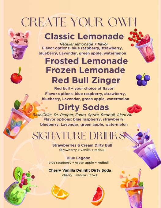 The Coffee Cow features an array of drinks and flavors depending on your refreshment needs. Some of the offerings include dirty sodas, iced energy drinks, milkshakes, as well as coffee options. They also have options to โCreate your ownโ drinks like with their classic lemonade that you can enjoy frozen or frosted.